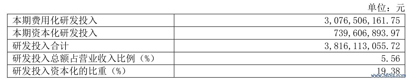 2024年全年,公司研发投入金额为38.16亿元,同比增长12.69%;研发投入占营业收入比例为5.56%,相比上年同期下降0.12个百分点。此外,公司全年研发投入资本化率为19.38%。