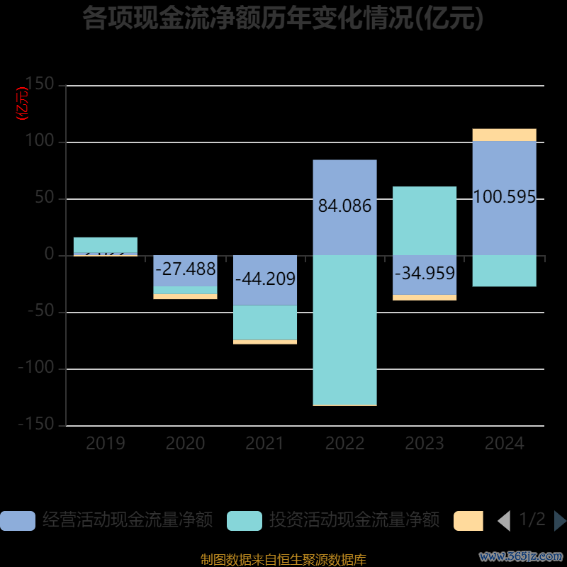 截至2024年,公司经营活动现金流净额为100.59亿元股票按月配资,同比增加135.55亿元;筹资活动现金流净额10.89亿元,同比增加15.86亿元;投资活动现金流净额-27.74亿元,上年同期为60.55亿元。