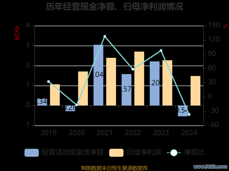 截至2024年,公司经营活动现金流净额为-5452.44万元,同比减少2.75亿元;筹资活动现金流净额4.86亿元,同比增加3.06亿元;投资活动现金流净额-1.58亿元,上年同期为1377.9万元。