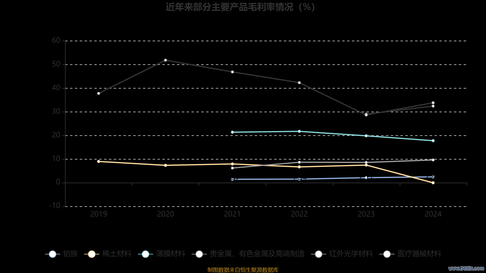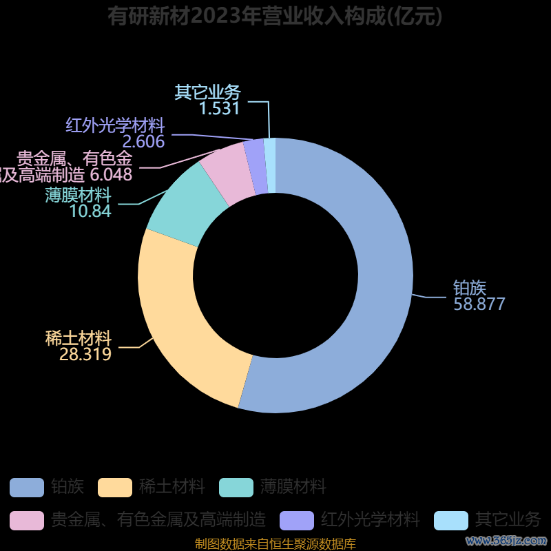 资料显示,公司产业分为电磁光医四个板块,其中电板块主要包括集成电路用薄膜材料、贵金属等业务,磁板块包括稀土金属、磁性材料及磁体等业务,光板块包括特种红外光学、发光材料等业务,医板块包括生物医用材料及口腔医疗器械等业务。